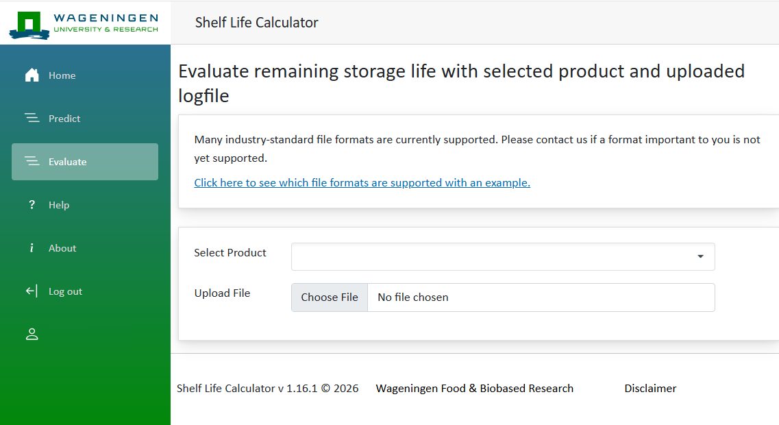 Use the Evaluate tab to assess the remaining storage life using real-world data logs from temperature or atmosphere recorders.