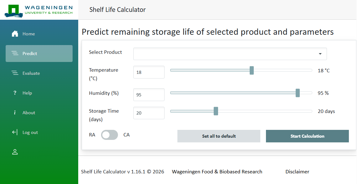 - Predict: Manually enter your storage parameters to simulate shelf life.