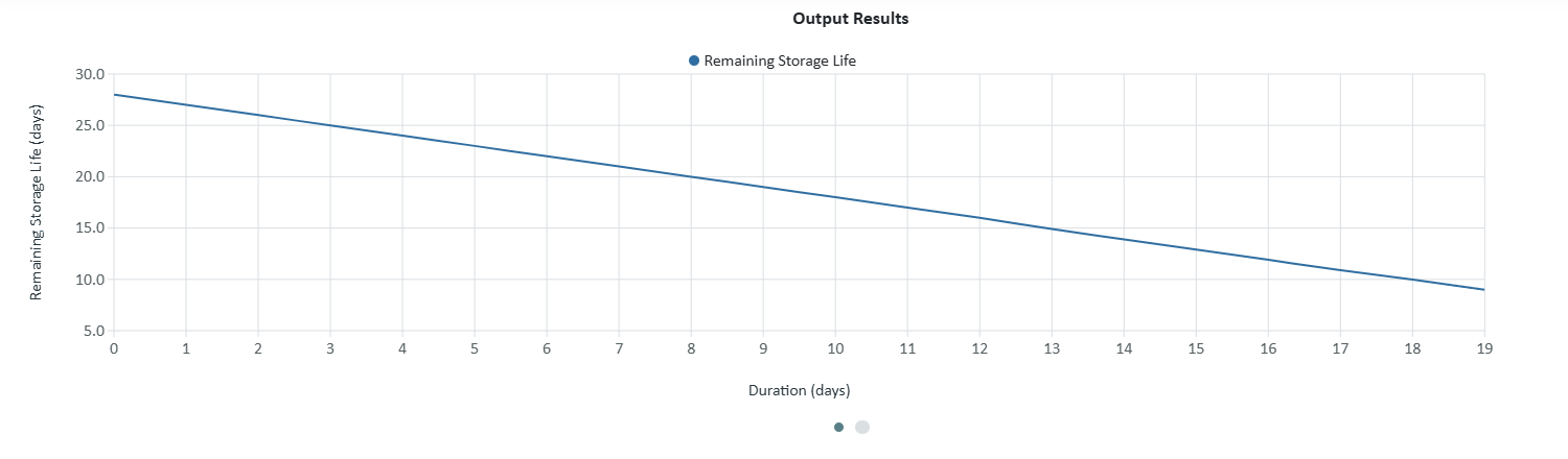 - Remaining Storage Life: Illustrates the predicted decline in remaining shelf life over time.